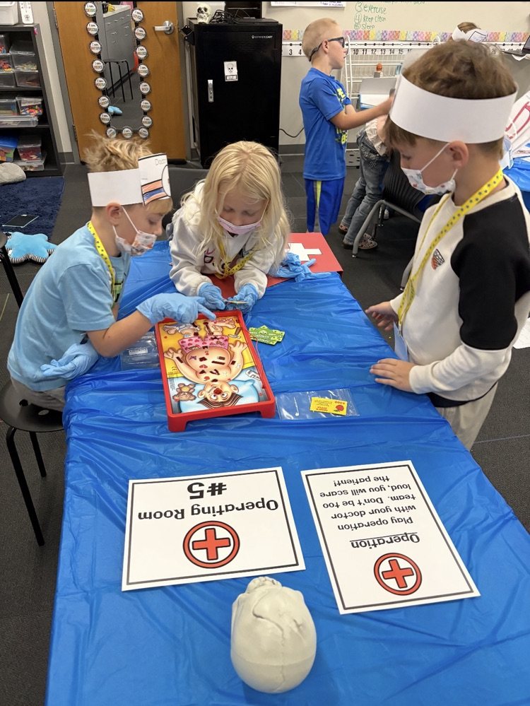 First grade students recently completed a unit on the human body, focusing on the five major systems: skeletal, digestive, nervous, circulatory, and muscular. To conclude the unit, students participated in a hands-on learning experience where they had the opportunity to act as doctors for the day, applying their knowledge in an engaging and educational way.